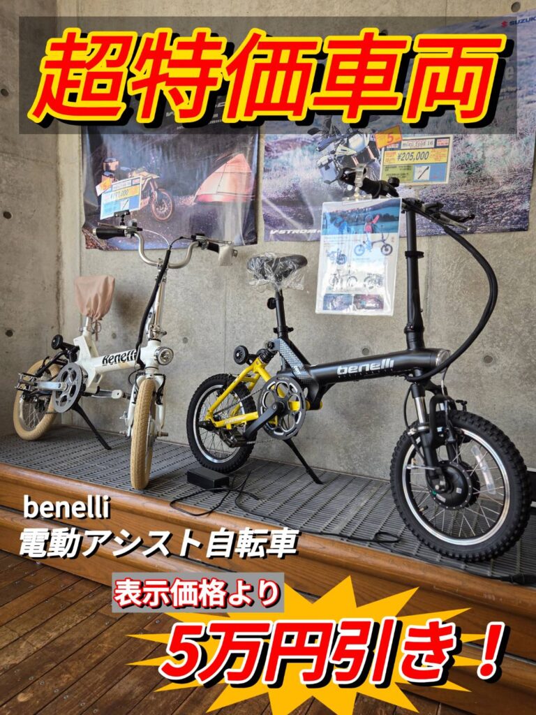 折り畳み電動自転車「benelli(ベネリ)」のミニフォールドシリーズは表示価格から5万円引きとなります✨